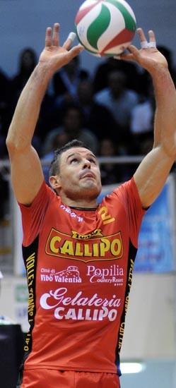 Nella foto, di archivio, Manuel Coscione al palleggio con la maglia della Tonno Callipo Vibo Valentia (foto www.volleytonnocallipo.com)