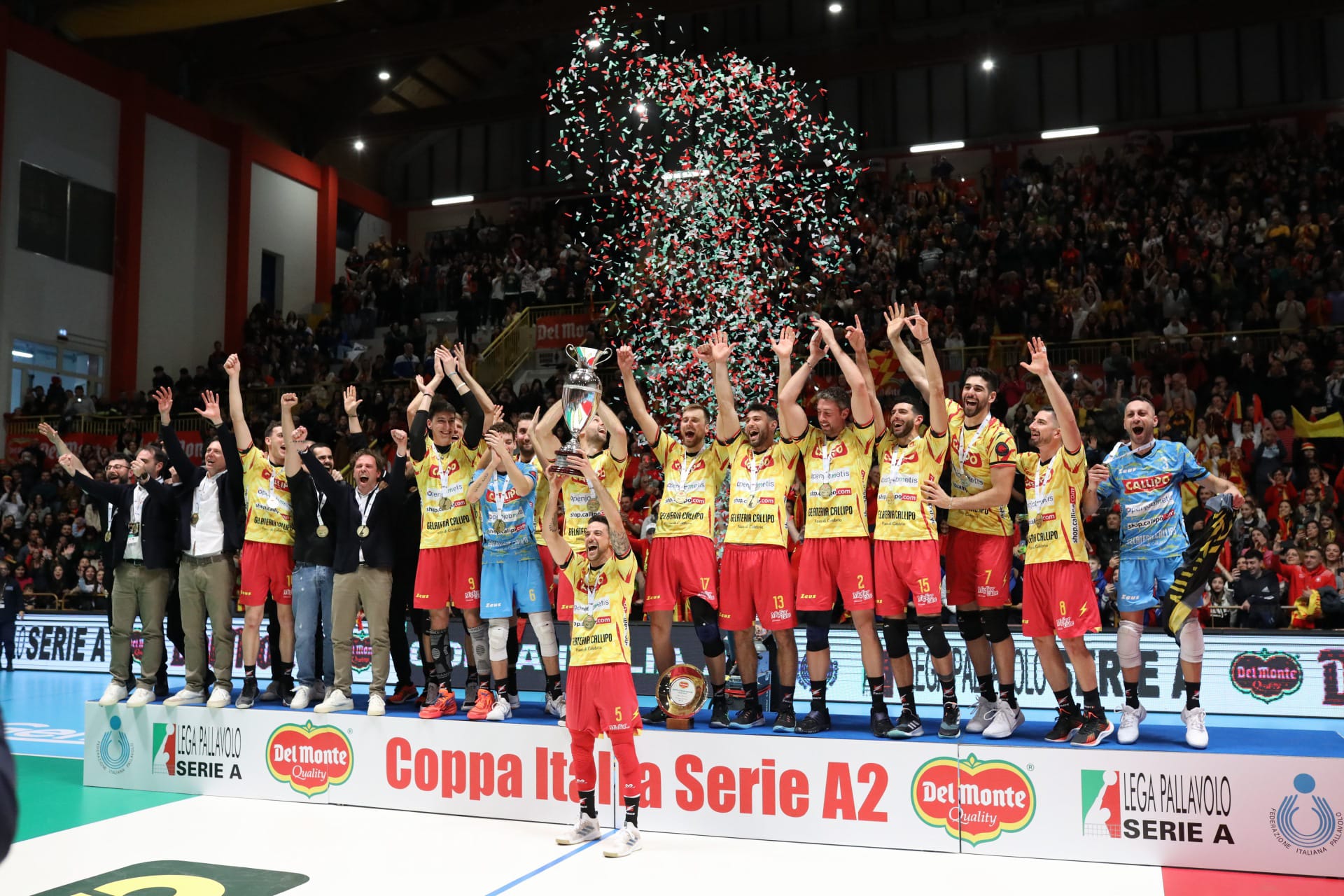 Una grande festa in casa giallorossa: la Tonno Callipo Volley alza al cielo la sua quarta Coppa Italia di A2. Per la prima volta davanti al pubblico di casa in un PalaMaiata gremito in ogni ordine di posto e traboccante di passione.