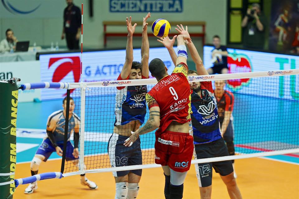 NOTE: Vero Volley Monza: bs 9, ric. pos. 49%, ric. perf. 29%, att. 61%, muri 5. Tonno Callipo Calabria Vibo Valentia: bs 14, ric. pos. 44%, ric. perf. 31%, att. 51%, muri 4.