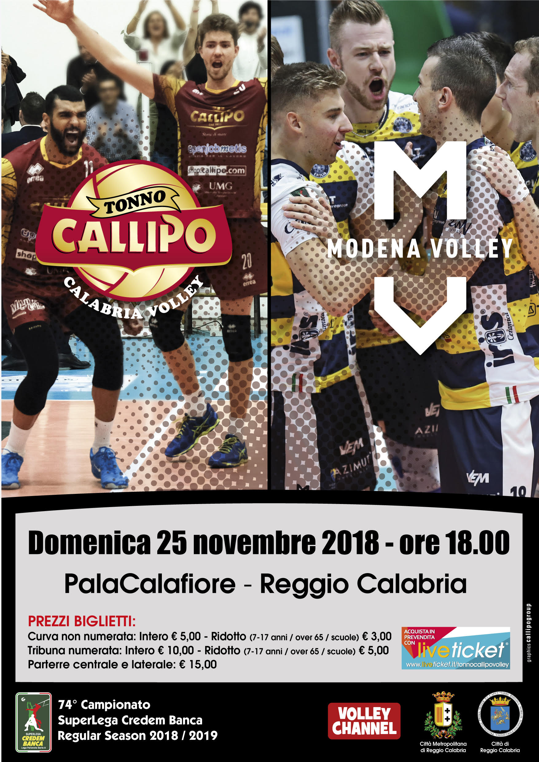 DOMENICA 25 NOVEMBRE (ORE 18:00) – TONNO CALLIPO CALABRIA VIBO VALENTIA – AZIMUT LEO SHOES MODENA.