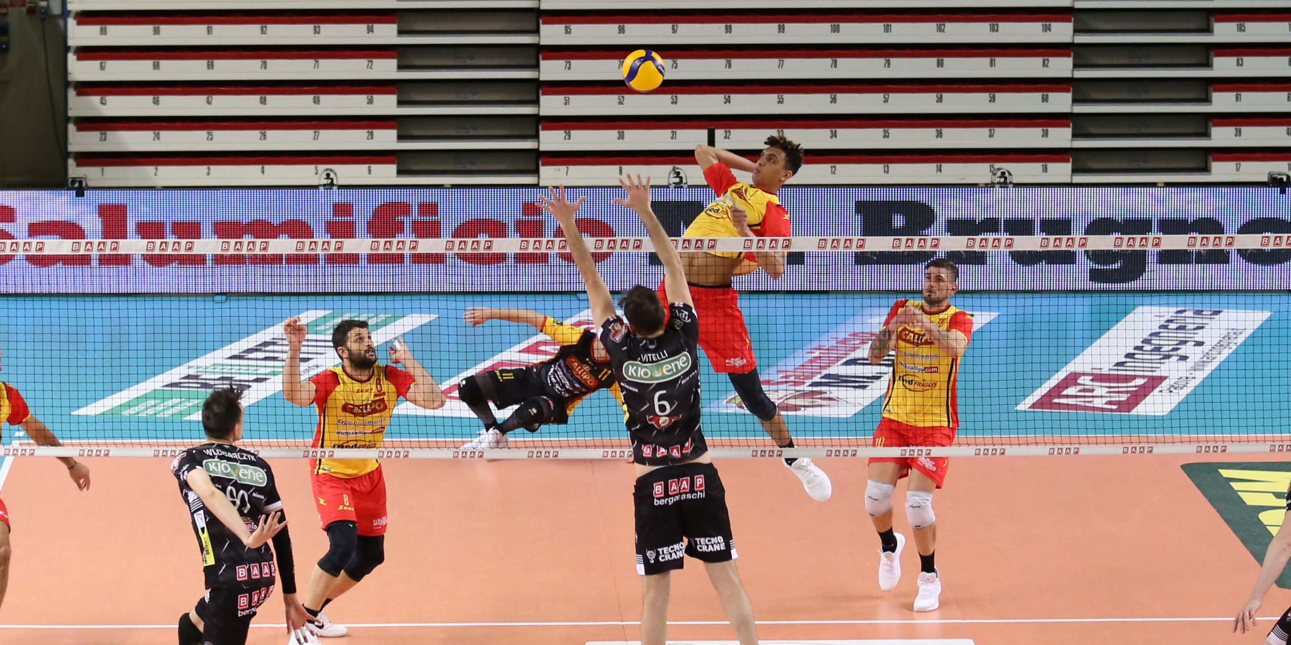 Alza il ritmo la Callipo con Dirlic (schierato al posto di Abouba) protagonista con 8 punti nel lungo (36 minuti) secondo parziale. Alquanto eloquente anche l’iniziale 5-1 giallorosso che lascia ben sperare sul buon esito del parziale. Cuttini chiama il primo time out ed i suoi ragazzi ne traggono giovamento trascinati soprattutto dall’esperto Stern (5 punti) oltre che dal solito Wlodarczyk (5). Da qui in poi si viaggia in perfetto equilibrio fino al 9-9. Quindi piccolo break di Vibo che sembra essere più lucida in attacco, tanto da mantenere sempre 2-3 punti di vantaggio (11-13), fino al +4 (13-17), grazie anche alla spinta di Defalco (5 punti). Padova però non molla e con Stern si porta sotto (17-18): qui Cuttini opta per l’ingresso di Bottolo per Merlo e Padova sembra migliorare. Il finale di set è palpitante: entra pure Gargiulo per Cester sul 20-20, e Vibo passa a condurre 23-21 (poco prima in campo anche Chakravorti in battuta). Nuova parità 23-23 ma è la formazione calabrese ad avere il primo set-point con una battuta sbagliata da Bottolo. Padova si difende bene e riesce a capovolgere le sorti del set: Stern e compagni ottengono ben due set point riuscendo a chiudere 27-25 dopo un video check prolungato per valutare un’eventuale infrazione di Ferrato che le immagini confermano inesistente. Veneti usciti alla distanza, lavorando molto bene nel muro-difesa: 62% in ricezione contro il 27% di Vibo e 4 muri punto contro i 2 dei calabresi.